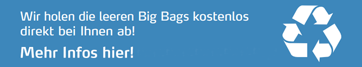 - Die leeren Säcke können Sie kostenlos über unseren Service bigbagweg.de abholen lassen. Sie werden einer werkstofflichen Verwertung zugeführt. Daraus werden dann z. B. Kabelkanäle hergestellt.