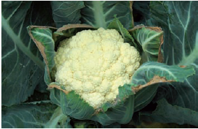 Bei Blumenkohl sieht das Gewebe rings um die Blattränder vertrocknet aus und hat eine papierartige Textur. Die jungen Blätter sind nekrotisch und deformiert und müssen bei der Ernte von der Blüte entfernt werden, das führt auf einigen Märkten zu Qualitätsproblemen.